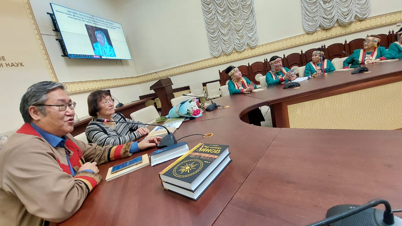 В рамках круглого стола 30 ноября в актовом зале Института гуманитарных исследований и проблем малочисленных народов Севера СО РАН состоялась презентация монографии “Юкагиры в истории и культуре: междисциплинарные исследования. Часть 1”. Автор книги — известный исследователь юкагирского народа Людмила Жукова.